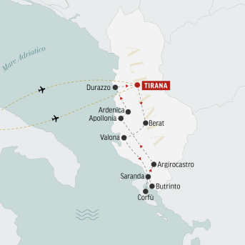 8 giorni per circondarsi di echi dal passato e suggestioni mediterranee, visitando luoghi affascinanti come Tirana, Berat, Valona, Butrinto, Saranda, Corfù, Argirocastro, Apollonia, Ardenica e Durazzo.