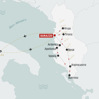 8 giorni alla scoperta di un Paese fatto di sole e scoperte, visitando luoghi imperdibili come Tirana, Durazzo, Croia, Berat, Argirocastro, Butrinto, Valona, Apollonia e Ardenica.