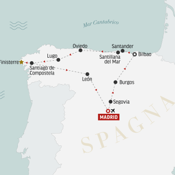 Spirito spagnolo. Il Cammino di Santiago non è semplicemente il percorso di pellegrinaggio più famoso al mondo: è un luogo dell’anima, un’esperienza in cui il viaggio diventa più importante della destinazione, che tanti decidono di intraprendere per ritrovare se stessi e la propria spiritualità più profonda. Il nostro tour si metterà sulle tracce dei luoghi toccati dall’antico Cammino, tra basiliche, villaggi e gli affascinanti paesaggi del Nord, fino a raggiungere Santiago de Compostela, con la sua meravigliosa cattedrale in cui riposano le spoglie dell’apostolo Giacomo.