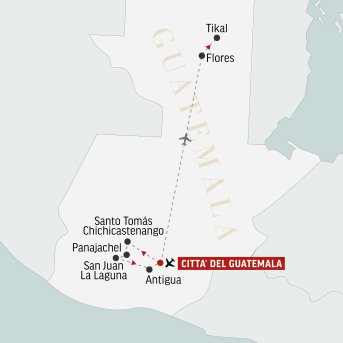 Le destinazioni, le visite, le attività, le escursioni, e tutto quello che succede, tappa dopo tappa, partendo da Città del Guatemala e attraversando un territorio incantevole.