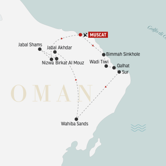 8 giorni per tuffarsi tra le meraviglie e le magiche atmosfere dell’Oman, visitando luoghi di grande fascino come Muscat, Sur, Wahiba Sands, Jabal Akhdar e Nizwa.