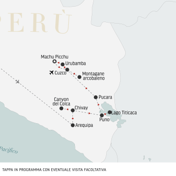 Le destinazioni, le visite, le attività, le escursioni, e tutto quello che succede, tappa dopo tappa, partendo da Lima e attraversando un territorio incantevole.